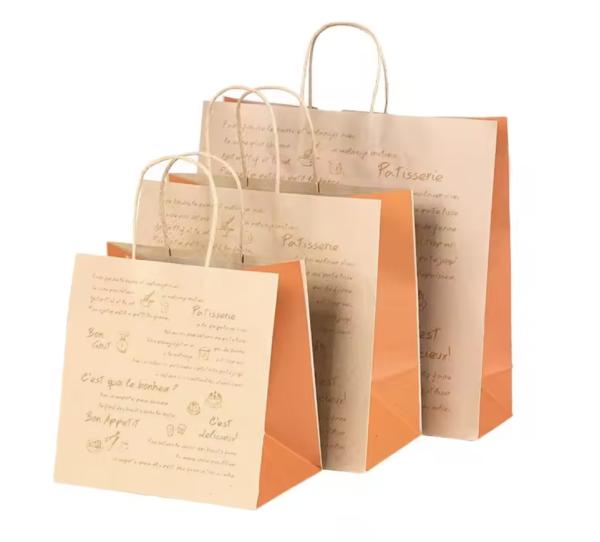 Customized grocery kraft paper bag, takeaway paper bag with twisted handle, and beverage logo Images |